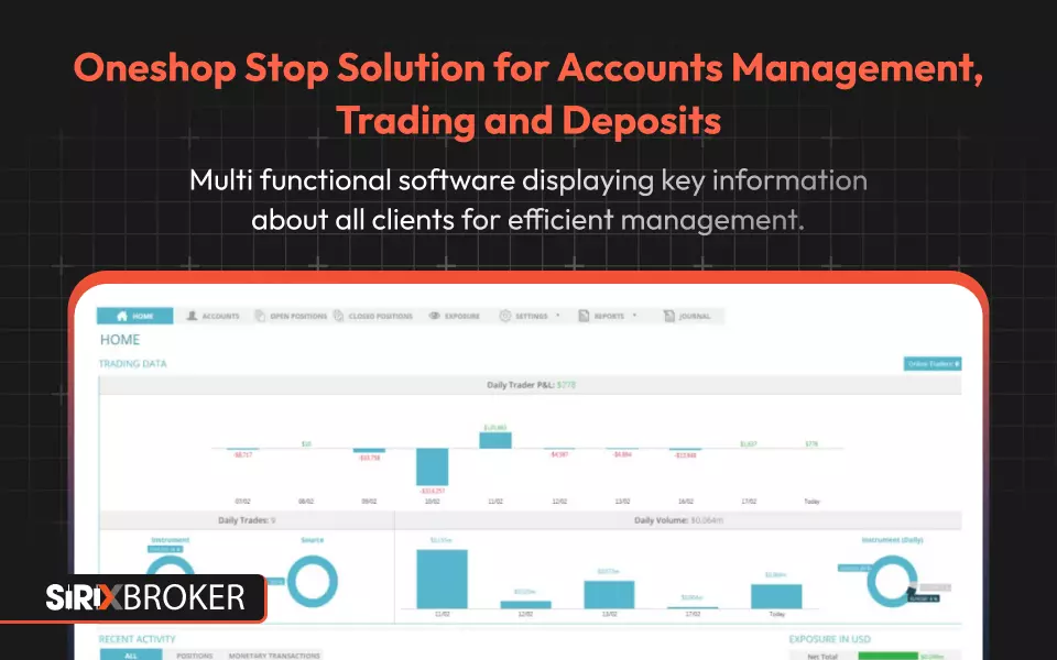 A powerful suite of reporting and analytics tools positions the Sirix Broker Admin Manager as a data-centric solution. Brokers can generate detailed reports on trading activities, performance, and financial trends, guiding strategic decision-making and business optimization. To ensure continuous and seamless platform performance, the platform also includes robust server and infrastructure management capabilities, covering data feeds and critical server settings. Enhanced security measures, such as encryption, secure authentication, and regular audits, further protect sensitive data and reinforce client trust. Through these combined features, Sirix Broker Admin Manager stands as a comprehensive solution that empowers brokers to streamline operations and grow their business sustainably.