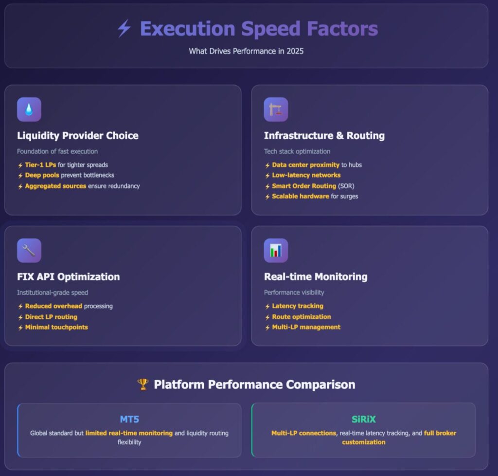 Liquidity is the foundation of execution. Brokers with access to Tier-1 LPs and deep liquidity pools deliver tighter spreads and faster fills. Aggregated liquidity ensures redundancy and reduces the risk of bottlenecks if one provider slows down.