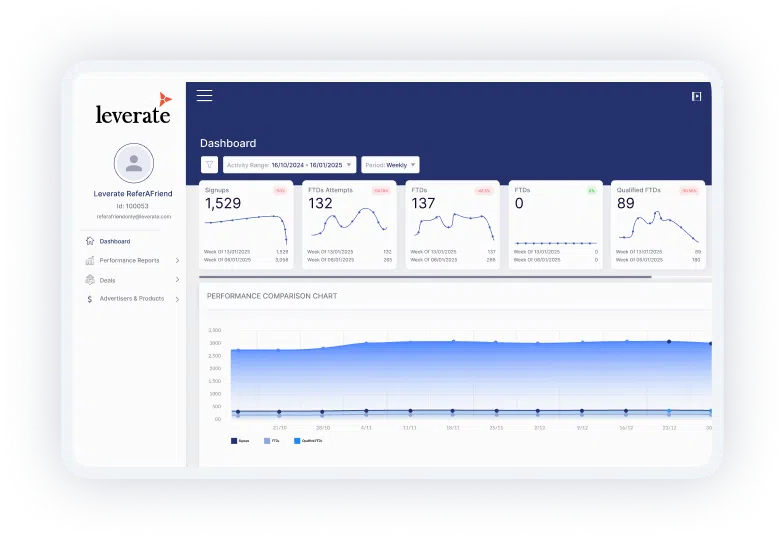 Leverate’s multi-tier system is made for scaling affiliate and IB networks. Track performance, automate rewards, and more..