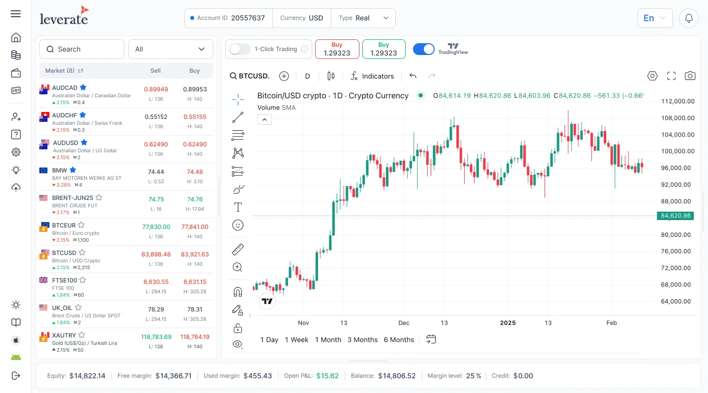 4. Интеграция SiRiX + TradingView Теперь с полным графиком TradingView , встроенным в SiRiX, ваши трейдеры получают профессиональную аналитику и технические индикаторы в вашем фирменном интерфейсе. Это углубляет вовлеченность и повышает удержание.